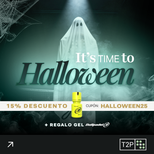 Y ahora, además, llega Halloween a Time2Padel con una promoción que merece la pena dejar pasar. 15% de descuento adicional en una selección de producto usando el código HALLOWEEN25. Una oportunidad única para renovar tu pala, tus zapatillas o esa prenda que llevas meses queriendo comprar.